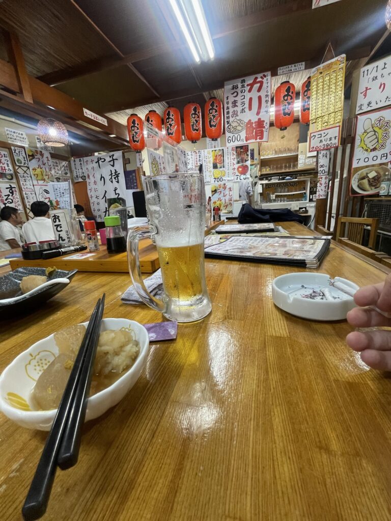 最後はおでんを食べながら、酒を飲んで締めることにした。店主がとても優しい方だった。おでんは大根とじゃがいもを頼んだ。ジャガイモのおでんがとても美味しかった。