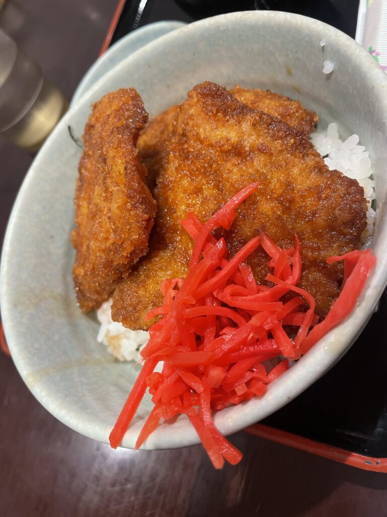 最後の最後に駅でタレカツを食べることができた。とてもシンプルな料理で、ソースがの濃厚なものではなく、サラサラとしたタレでとても食べやすかった。紅生姜がいいアクセントになっていた。